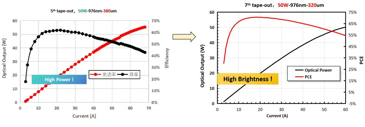 一、 星漢激光技術(shù)前沿成果展示:976nm1.1X320um 50W高功率半導(dǎo)體激光芯片進(jìn)入β樣品階段;