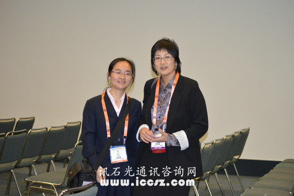 | 訊石記者(左)與Dr.Karen Liu(Principal Analyst , Components, Ovum) |
