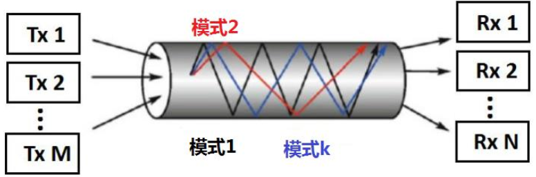 圖1 少模光纖不同模式傳遞信息的示意圖