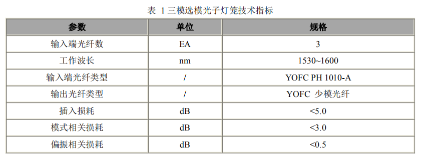 摘要:長(zhǎng)飛公司與北京郵電大學(xué)合作制作的光纖簇光子燈籠作為一種全光纖結(jié)構(gòu)的器件,具有低損耗、低模間串?dāng)_的優(yōu)點(diǎn)(表1為該產(chǎn)品的技術(shù)指標(biāo))。該技術(shù)及產(chǎn)品達(dá)到國(guó)際先進(jìn)水平,已成功應(yīng)用于空分復(fù)用系統(tǒng)。