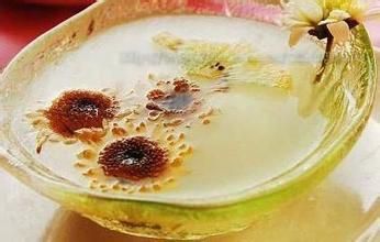 菊花15克,粳米100克。菊花洗凈,粳米淘洗干凈。菊花、粳米放鍋中,加適量清水,加蓋,旺火煮沸,文火熬至成粥即可。該粥散風(fēng)熱、清肝火、降血壓。適用于頭暈、頭痛、目赤、疔瘡腫毒、原發(fā)性高血壓等。