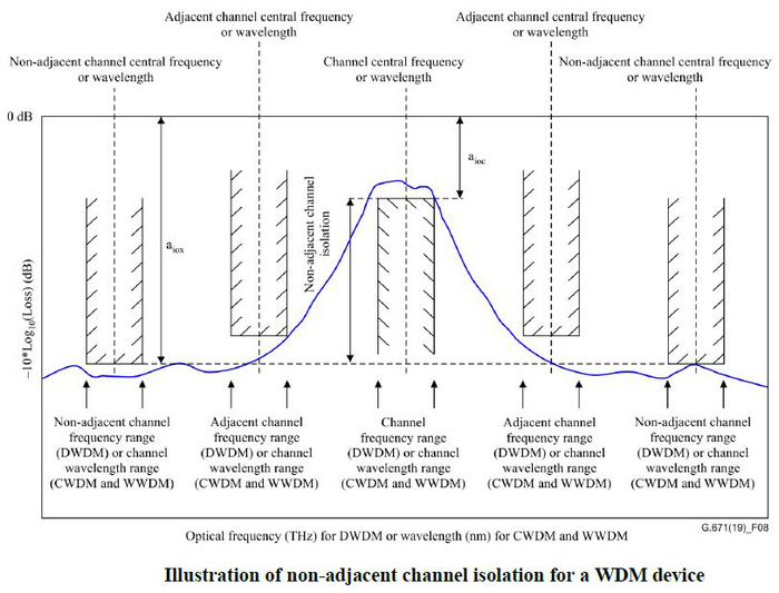 圖2:ITU-T G.671關于非相鄰通道隔離度的圖解