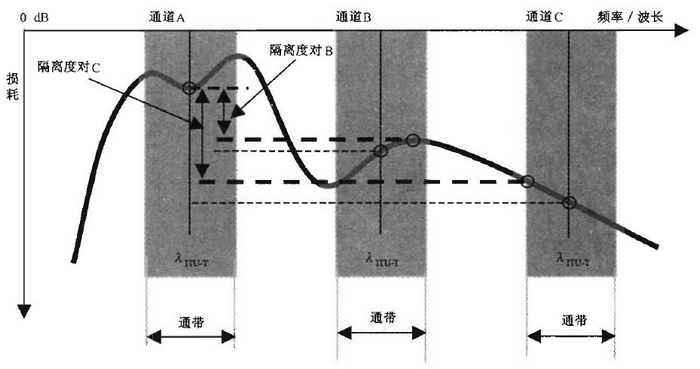 對于頻率相鄰的兩個信號λw和λx,相鄰隔離度ISOLwx = ILmin(λw) - ILmax(λx)