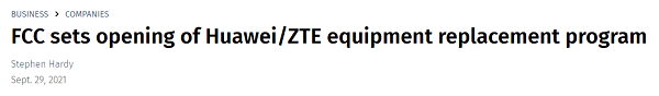 ICC訊(編譯:Nina)據(jù)外媒消息,美國聯(lián)邦通信委員會(FCC)有線競爭局(Wireline Competition Bureau,WCB)已將美國東部時(shí)間2021年10月29日(星期五)上午12:00定為向安全和可信通信網(wǎng)絡(luò)補(bǔ)償計(jì)劃(The Secure and Trusted Communications Networks Reimbursement Program)提交申請的開放日期。這項(xiàng)19億美元的計(jì)劃旨在補(bǔ)償網(wǎng)絡(luò)運(yùn)營商更換華為中興設(shè)備的成本。該計(jì)劃的申請截止時(shí)間為2022年1月14日(周五)晚上11點(diǎn)59分。