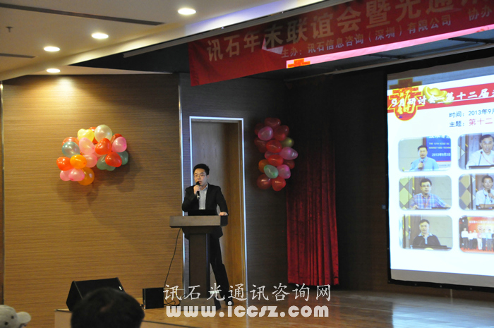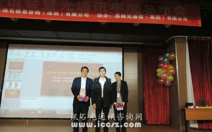 ICCSZ訊(編輯:Debi)賀新年、迎新春。新的一年承載了新的夢想和希望。2014年1月10日下午,在深圳坪山溫暖宜人的冬日下,由訊石精心打造、在昂納光通信(集團(tuán))有限公司協(xié)辦的“訊石年末聯(lián)誼會暨光通訊年度總結(jié)會”在昂納新工廠的會議室里成功舉辦。本次聯(lián)誼會有幸得到了澳譜光通訊器件( 上海 )有限公司、珠海飛宇光電科技有限公司、飛秒光電科技(西安)有限公司和深圳市共進(jìn)電子股份有限公司的禮品贊助支持。本次聯(lián)誼會聚集了八十余人,大家熱情洋溢,滿面笑容,看起來2013年的收獲不小。聯(lián)誼會上昂納集團(tuán)領(lǐng)導(dǎo)、訊石會員客戶及特邀嘉賓、共80余人歡聚一堂,一起回顧了2013年的收獲與喜悅,共同表達(dá)了對2014年的期待與美好祝福。
