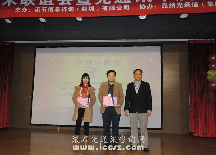 緊接著,由訊石為大家宣布訊石年度"十佳會員企業(yè)"單位,并為來到現(xiàn)場的五大獲獎單位——億源通、太辰、光迅、翔光、晨信頒獎。由訊石咨詢顧問楊亞濤博士為已到現(xiàn)場的“特別貢獻(xiàn)獎”——昂納、Source頒獎。對于未親臨現(xiàn)場的獲獎單位,訊石后續(xù)將會把獎杯、獎狀一并寄給相應(yīng)獲獎單位。迫于名額有限,優(yōu)秀企業(yè)名稱不能一一列出,訊石在此感謝會員企業(yè)一直以來的大力支持!