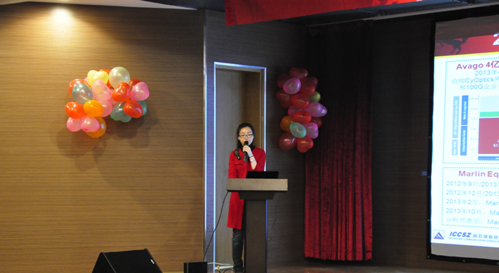 緊接著,訊石高級分析師吳娜為大家?guī)砹恕度蚬馔ㄐ攀袌龌仡櫦罢雇返膱?bào)告,總結(jié)一系列發(fā)生在2013年的熱點(diǎn)事件,有并購重組、高層變動/裁員、設(shè)備商自制光模塊等等熱點(diǎn),并對國內(nèi)2013年光通信市場的發(fā)展作出總結(jié),2013年數(shù)通器件市場表現(xiàn)出強(qiáng)勁的增長勢頭,而電信器件市場則平平如也,未來幾年,數(shù)通市場的增長將逐步放緩,而電信市場則會表現(xiàn)得更好??傊瑓悄确治鰩煴硎?,未來三年的投資環(huán)境是比較樂觀的!