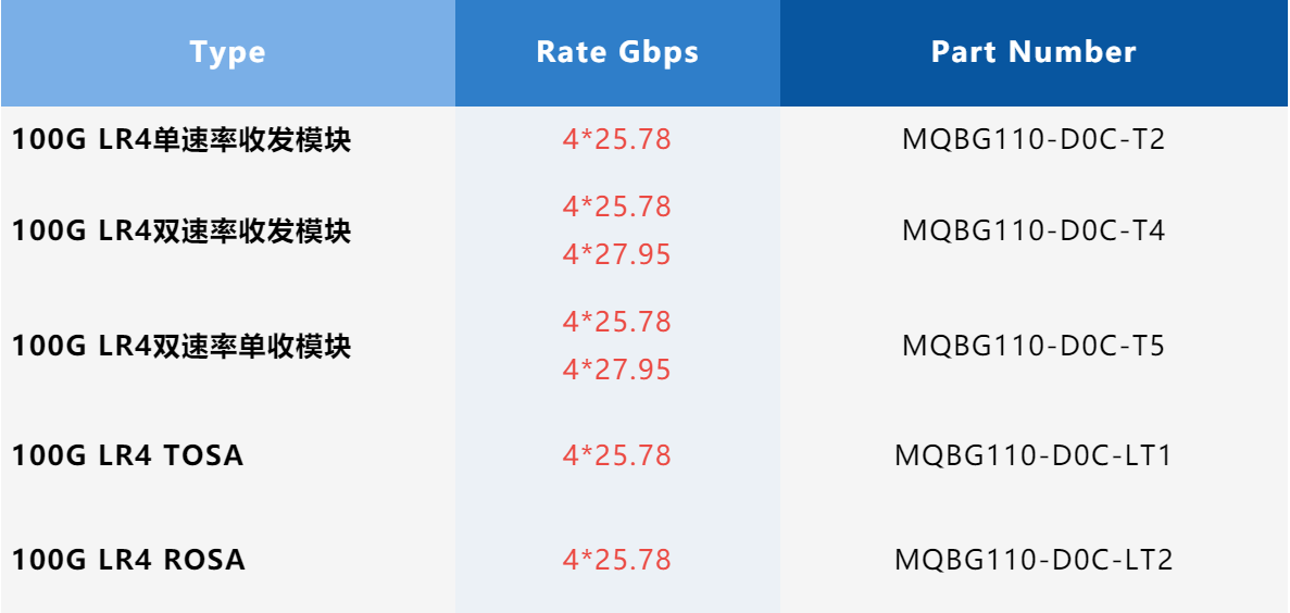 本著為客戶(hù)服務(wù)極致的宗旨,在100G LR4 10km產(chǎn)品上做出了延伸,這次推出的還有: