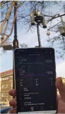 Book RRU桿微站,作為5G立體組網(wǎng)的重要組成部分,充分利用現(xiàn)有燈桿、監(jiān)控桿等資源,發(fā)揮其低成本靈活部署的優(yōu)勢(shì)特點(diǎn),為五大道的信息化升級(jí)建設(shè)添磚加瓦,在5G宏站網(wǎng)絡(luò)覆蓋不到的場(chǎng)景進(jìn)行有效的補(bǔ)盲,通過現(xiàn)網(wǎng)實(shí)測(cè)(如圖2所示),5G上行峰值速率可達(dá)128Mbps,下行峰值速率為1034Mbps,充分保障了5G用戶的上網(wǎng)體驗(yàn),將五大道打造成天津一張“會(huì)呼吸的名片”。