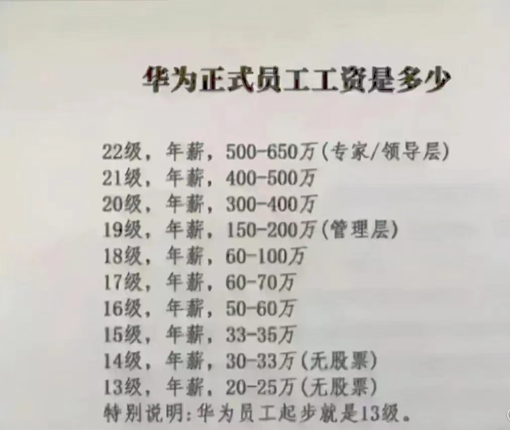 華為正式員工“年收入”流出,校招員工起薪13級(jí),看到數(shù)額羨慕了