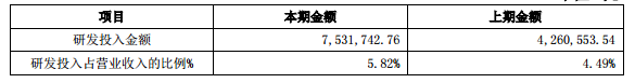 公司重視研發(fā),2015年研發(fā)投入額 7,531,742.76元,研發(fā)投入占營業(yè)收入的比例% 5.82%;2014年該金額為4,260,553.54元,占比為4.49%。