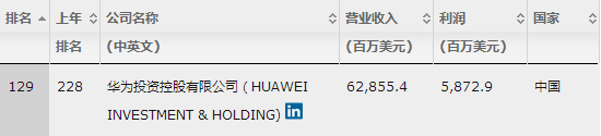ICCSZ訊    北京時(shí)間7月20日晚,財(cái)富中文網(wǎng)與全球同步發(fā)布了最新的《財(cái)富》世界500強(qiáng)排行榜。華為以628.55億美元營(yíng)業(yè)收入再度上榜,排名第129位,較上一年的第228位跨越式提升近百名。主設(shè)備商中,愛(ài)立信排名第357位。