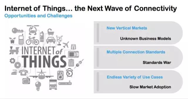 物聯(lián)網給我們帶來新一代網絡連接的浪潮,同時在我們的生活中起到至關重要的作用,帶來機遇的同時也帶來了挑戰(zhàn)。它不僅為我們帶來新的垂直市場,還引入了新的商業(yè)模式。相信大家在騎共享單車的時候,已經享受到物聯(lián)網的服務。我們看到各種各樣的標準層出不同,標準化的戰(zhàn)爭同時被引入進來。物聯(lián)網在為我們帶來各種各樣的使用場景的同時,也讓我們看到了其市場接受度緩慢的問題。