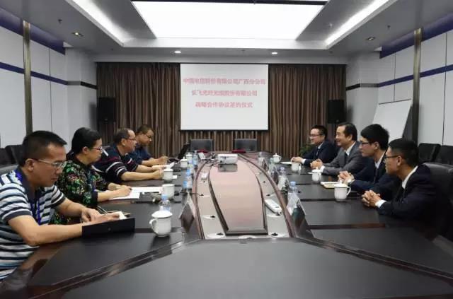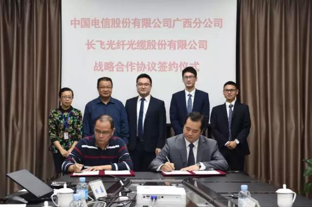 ICCSZ訊 2017年10月26日,長飛光纖光纜股份有限公司(以下簡稱“長飛公司”,股票代碼:6869.HK)與中國電信集團(tuán)股份有限公司廣西分公司(以下簡稱“中國電信廣西分公司”)成功簽署了戰(zhàn)略合作協(xié)議。中國電信廣西分公司副總經(jīng)理葉松華,采購部總經(jīng)理李強(qiáng),采購部副總經(jīng)理黃敏,采購部余忠澤、楊磊,長飛公司國內(nèi)公網(wǎng)總部經(jīng)理周宏慷,華南大區(qū)銷售總監(jiān)王翔,華南大區(qū)董小雷、盧來利出席了簽約儀式。