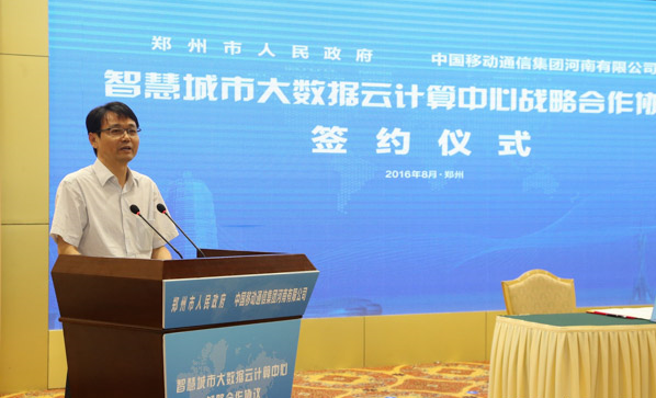摘要:8月25日上午,鄭州市人民政府、河南移動在嵩山飯店簽署 “智慧城市大數(shù)據(jù)云計算中心戰(zhàn)略合作協(xié)議”,將開啟鄭州市智慧城市建設(shè)和大數(shù)據(jù)產(chǎn)業(yè)發(fā)展的新篇章。