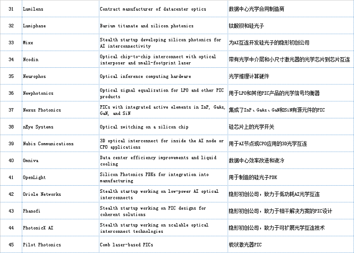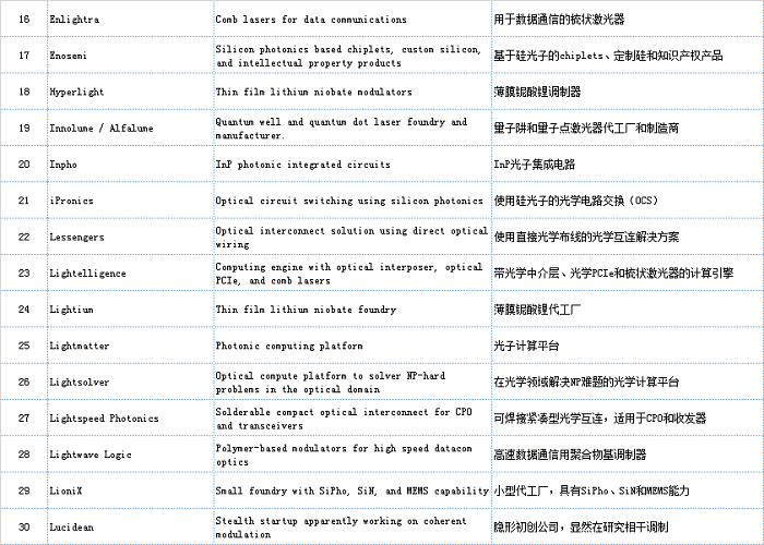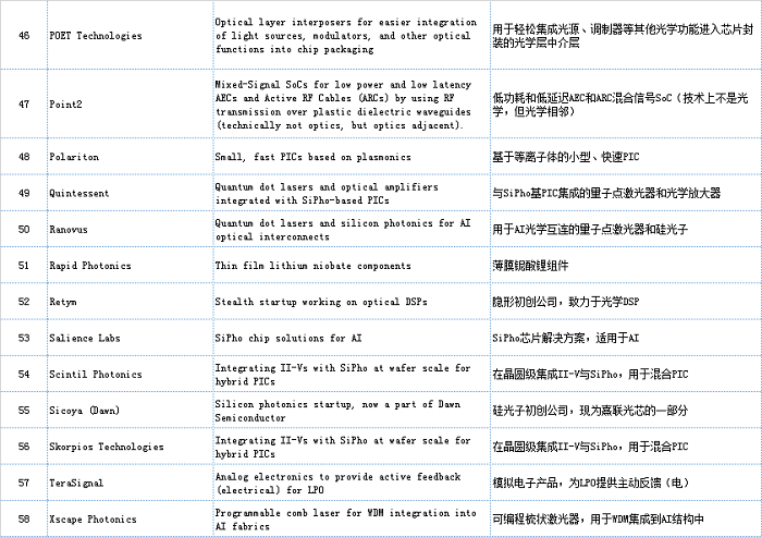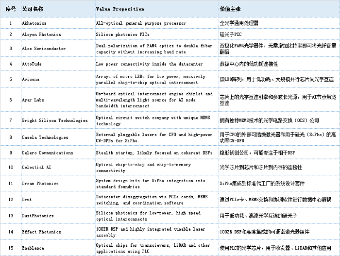 以下是目前Cignal AI正在追蹤的光器件初創(chuàng)企業(yè)名單: