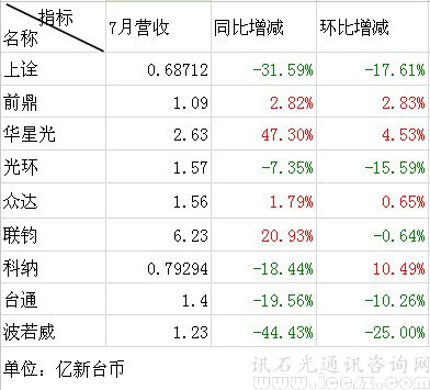 臺(tái)灣光器件商7月營(yíng)收趨淡