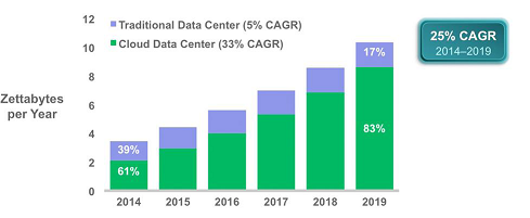 圖2:Source: Cisco Global Cloud Index, 2014–2019