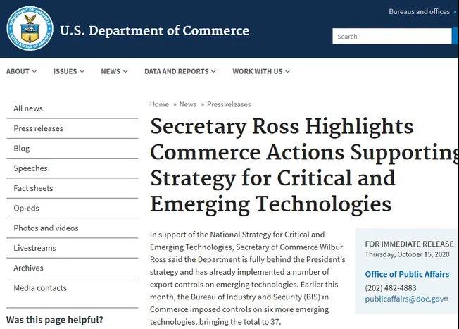據(jù)了解,目前受到出口管制的新興技術(shù)總數(shù)已經(jīng)達到了37項。