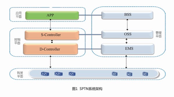 SPTN系統(tǒng)架構(gòu)由轉(zhuǎn)發(fā)面、控制平面、管理平面和應(yīng)用平面組成,由圖1所示。
