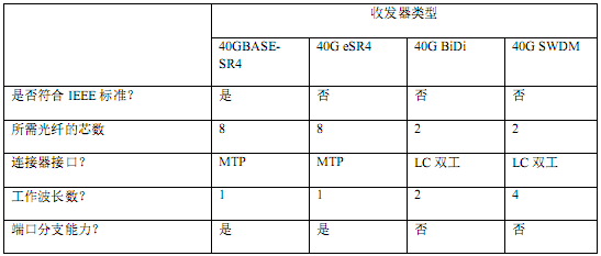 表1:40G收發(fā)器總結(jié)
