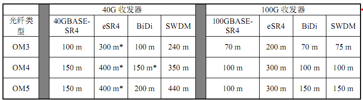 注釋1:距離代表收發(fā)器制造商公布的參數(shù);有些交換機(jī)供應(yīng)商提供不同的參數(shù)。