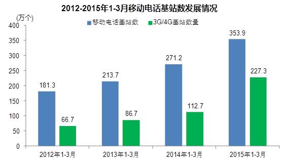 無線方面:在4G移動電話用戶快速增長的推動作用下,移動互聯(lián)網(wǎng)接入流量消費繼續(xù)爆發(fā)式增長。3月當(dāng)月移動互聯(lián)網(wǎng)接入流量達2.8億G,創(chuàng)歷史新高。1-3月累計達7.64億G,同比增長87.9%,比1-2月增速提升2.4個百分點。月戶均移動互聯(lián)網(wǎng)接入流量達295.1M,同比增長26.9%。移動通信設(shè)施建設(shè)步伐加快,3G/4G移動電話基站占比超六成。1-3月,基礎(chǔ)電信企業(yè)加大以4G為主的移動通信網(wǎng)絡(luò)建設(shè),新增移動通信基站14.2萬個,總數(shù)達353.9萬個,其中3G/4G基站總數(shù)達227.3萬個,占比提升至64.2%,3G/4G網(wǎng)絡(luò)服務(wù)質(zhì)量和覆蓋繼續(xù)提升。WLAN網(wǎng)絡(luò)熱點覆蓋繼續(xù)推進,WLAN公共運營接入點(AP)總數(shù)達600.9萬個。