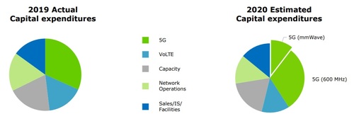 為了推進(jìn)5G部署,US Cellular表示,2020年資本支出可能高達(dá)9.5億美元,遠(yuǎn)遠(yuǎn)超過(guò)公司2019年期間在網(wǎng)絡(luò)和運(yùn)營(yíng)上花費(fèi)的7.1億美元。根據(jù)下圖中US Cellular的資本開支結(jié)構(gòu)來(lái)看,2020年,該運(yùn)營(yíng)商5G資本支出約占其總資本開支的41%,即約3.9億美元(包括5G毫米波的8600萬(wàn)美元和5G 600MHz的3.04億美元),相比2019年的約2.27億美元,增加近1.63億美元。