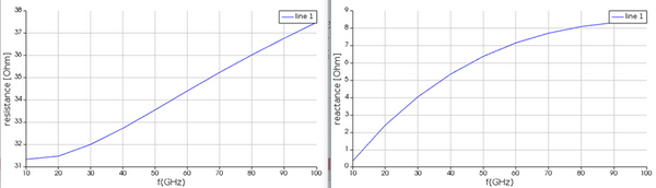 在偏壓為0V的情況下,對(duì)頻率10GHz~100GHz,間格為10GHz的每個(gè)頻率求解有效折射率和群折射率(其中實(shí)部為損耗),再以腳本計(jì)算出基本模態(tài)的阻抗(其中實(shí)部為電阻,虛部為電抗)。這些結(jié)果也存檔成.mat格式用于INTERCONNECT系統(tǒng)仿真中。