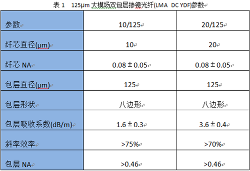 125μm大模場(chǎng)雙包層摻鐿光纖包含以下兩種型號(hào):