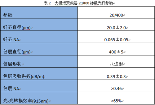長(zhǎng)飛公司經(jīng)過(guò)五年的技術(shù)積淀、平臺(tái)打造和產(chǎn)品系列化研發(fā),已逐步推出了定位于低功率光纖激光器的125μm系列大模場(chǎng)雙包層摻鐿光纖和定位于中高功率光纖激光器的20/400系列雙包層摻鐿光纖。