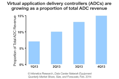 *應用交付控制器虛擬設備市場將成為主流,在Q413其占應用交付控制器市場14%的份額;