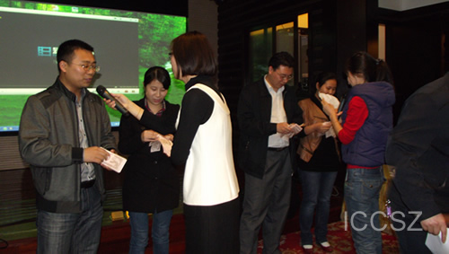 互贈(zèng)禮物把這次聯(lián)誼活動(dòng)推向高潮。訊石在活動(dòng)之前通知大家?guī)б环菪《Y物,在這個(gè)環(huán)節(jié)中,到會(huì)者在進(jìn)場(chǎng)之前把自己的名片放在我們事先準(zhǔn)備的盒子里,然后從第一個(gè)抽到名片的人開(kāi)始,被抽到的名片,名片的主人就要給抽到他名片的那個(gè)人一份禮物,送完禮物之后,被抽到者會(huì)接著去抽下一張名片,以此循環(huán)。在這個(gè)過(guò)程中,每一個(gè)人都充滿著好奇,等待著驚喜,不知道自己的禮物會(huì)送給誰(shuí),不知道自己會(huì)抽到誰(shuí),也不知道會(huì)收到什么樣的禮物,直到自己站在臺(tái)上抽出名片的那一刻?,F(xiàn)場(chǎng)變成了歡樂(lè)的海洋,好像每一個(gè)人都去解開(kāi)一個(gè)令人充滿期待的謎底一樣。禮物此刻已經(jīng)不分貴賤,因?yàn)樗即碇粋€(gè)人至誠(chéng)的心意,職位這時(shí)也已不分高低,因?yàn)榇丝瘫舜硕汲闪俗钫嬲\(chéng)的朋友。在晚上九點(diǎn)鐘活動(dòng)結(jié)束時(shí),還有很多人依然依依不舍的留在會(huì)場(chǎng)攀談著。