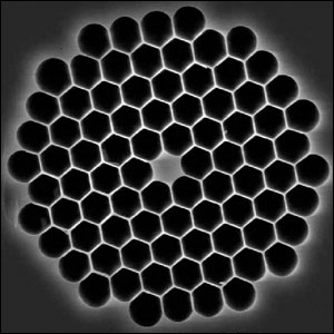 PCF的另一個(gè)特點(diǎn)是它具有奇異的色散特性。現(xiàn)在人們已經(jīng)在PCF中成功產(chǎn)生了850nm光孤子,預(yù)計(jì)將來(lái)波長(zhǎng)還可以降低。此外,有些企業(yè)已經(jīng)研究出新的光子晶體光纖,一種是中空的"空氣波導(dǎo)光子能帶隙晶體光纖"(air-guidingPhotonicBandgapFiber),此晶體光纖的纖芯是中空的,利用空氣作為波導(dǎo),使光可以在特殊的能帶隙中傳輸。另外一種是"雙包層高數(shù)值孔徑摻鐿晶體光纖"(DoubleClad High NA Yb Fiber),該光纖可以用在光纖激光器或光纖放大器中,另外由于該光纖具有光敏性,還可以在它上面刻寫(xiě)光纖光柵。