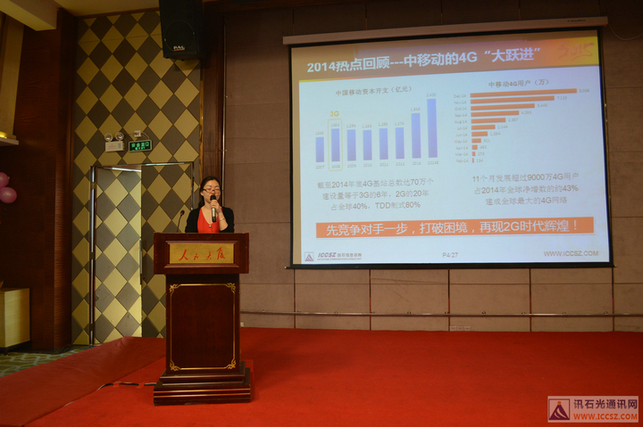 緊接著,訊石高級(jí)分析師吳娜為大家?guī)?lái)了《2014年光通訊市場(chǎng)總結(jié)》的報(bào)告,總結(jié)一系列發(fā)生在2014年光通信界的熱點(diǎn)事件和對(duì)未來(lái)市場(chǎng)的展望,報(bào)告詳細(xì)解讀了2014年4G的建設(shè)情況,近年來(lái)發(fā)展最快的技術(shù)G.fast,數(shù)據(jù)中心的發(fā)展,更有2014年不能忽略得重組并購(gòu)狂潮,F(xiàn)inisar、JDSU、O-claro等大型廠商都卷入了其中,PLC芯片的大漲價(jià)更是讓人瞠目,業(yè)內(nèi)人士預(yù)測(cè)此次漲價(jià)或會(huì)延續(xù)半年左右,但即使價(jià)格回落也不會(huì)像從前一樣低價(jià)了??偟膩?lái)說(shuō),2014年光網(wǎng)絡(luò)市場(chǎng)有人歡喜有人愁,2015年數(shù)據(jù)中心互連將成為最主要的動(dòng)力。