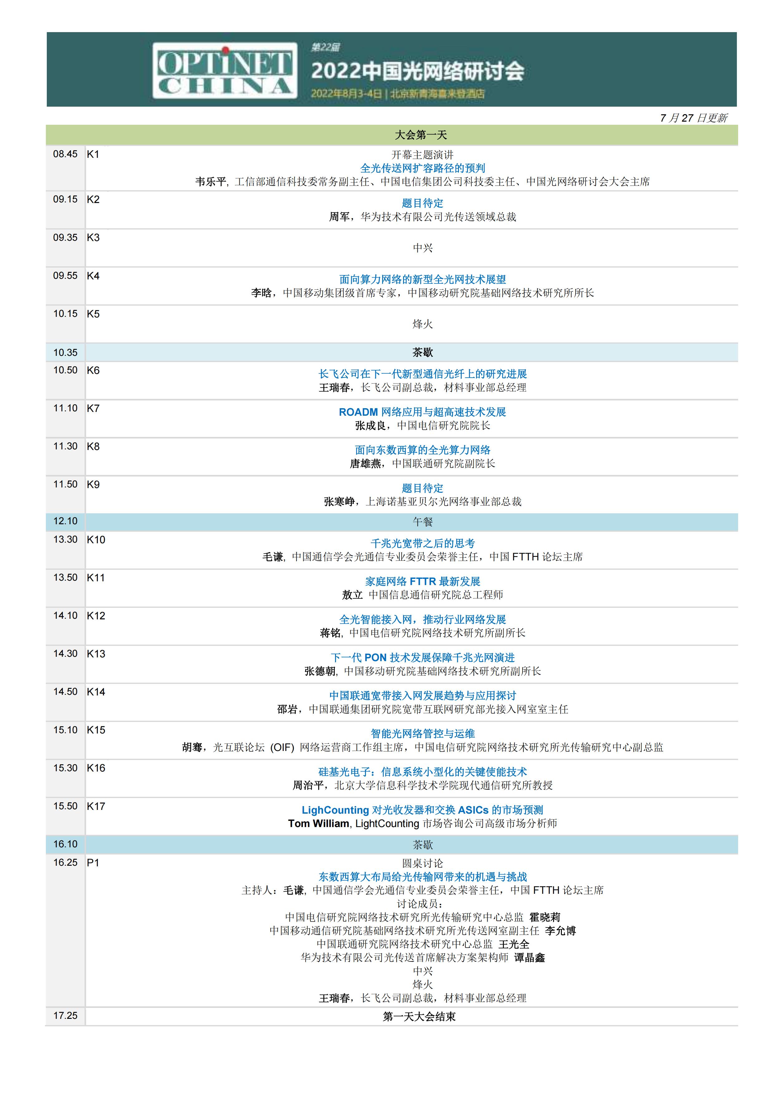 中國光網(wǎng)絡(luò)研討會議程,持續(xù)更新...
