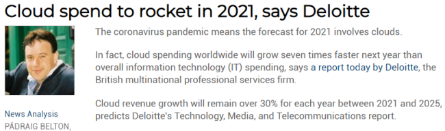 ICC訊(編譯:Nina)英國跨國專業(yè)服務公司德勤(Deloitte)發(fā)布一份報告稱,明年全球云計算支出的增長速度將是整體信息技術(IT)支出增長速度的7倍。德勤預測,從2021年至2025年,云計算收入的年增長率將保持在30%以上。