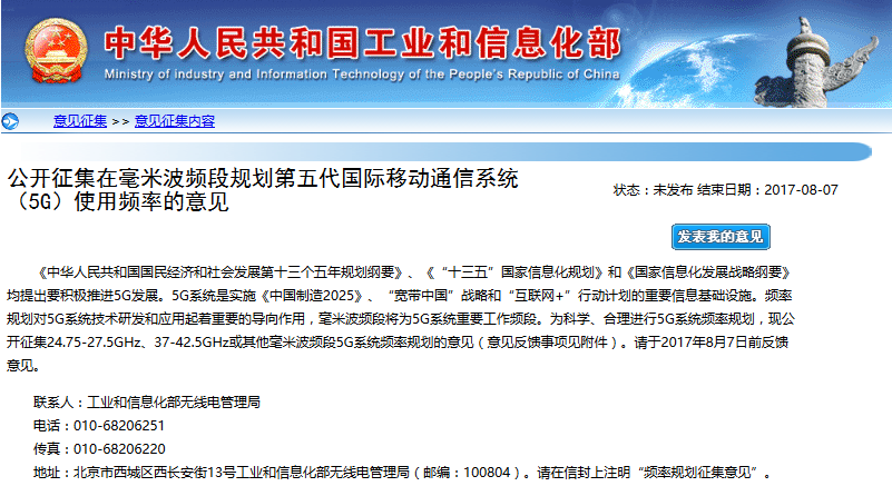 ICCSZ訊 今日,工信部正式公開征集在毫米波頻段規(guī)劃第五代國際移動通信系統(tǒng)(5G)使用頻率的意見。