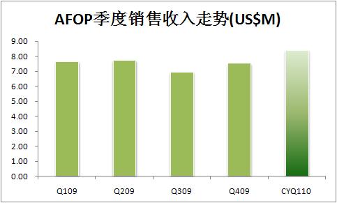 一季度AFOP實(shí)現(xiàn)凈收入64.1萬美元,每股折合0.02美元。上個(gè)季度的凈收入是42.8萬美元,去年同期為30.2萬美元。這包括截止2010年3月31日的股票補(bǔ)償費(fèi)用33000美元,去年同期該費(fèi)用是28000美元。