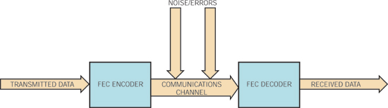 FEC(前向糾錯)是許多現(xiàn)代數(shù)字通信系統(tǒng)的重要組成部分,它能將其他情況下無法使用的鏈路變成切實可用的系統(tǒng)。從DVD到移動電話,從電視到磁盤機,糾錯技術都是一個數(shù)學奇跡,應用得當,能收到劣材成器的效果。圖1是一個使用FEC編碼和解碼的通信信道的簡化圖。