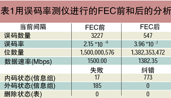 表1:用誤碼率測儀進行的FEC前和后的分析