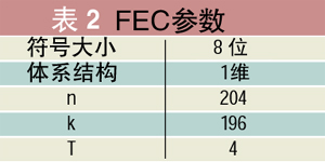 為了設計一個適用于這一數(shù)據(jù)的糾錯器,你首先使用一個簡單的8位符號長的一維信息包代碼,即RS(204,196),它是一個T=4 的糾錯器。當誤碼率小于每204字節(jié)信息包4字節(jié)差錯時,該代碼能糾正符號錯誤。為了在一個具有FEC仿真功能的誤碼率測試儀內部進行這種分析,你必須啟用此類糾錯器并設置表2中列出的參數(shù)。