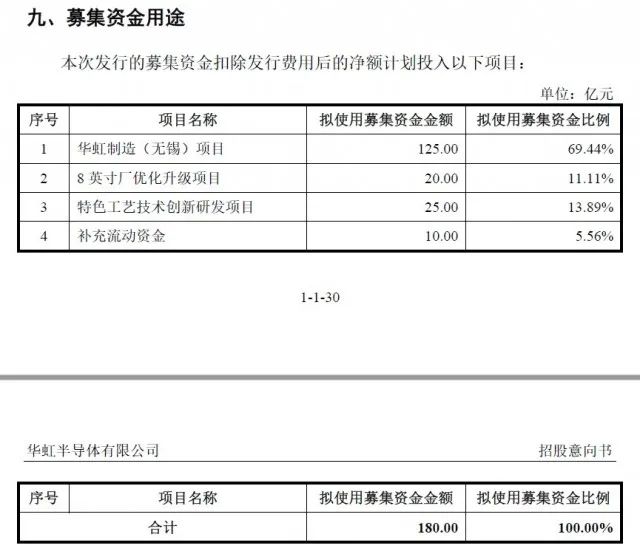 華虹半導(dǎo)體本次募投項目預(yù)計使用募集資金180億元,計劃投入華虹制造(無錫)項目、8英寸廠優(yōu)化升級項目、特色工藝技術(shù)創(chuàng)新研發(fā)項目以及補充流動資金,其中,華虹制造(無錫)項目是華虹半導(dǎo)體此次募投的重點。