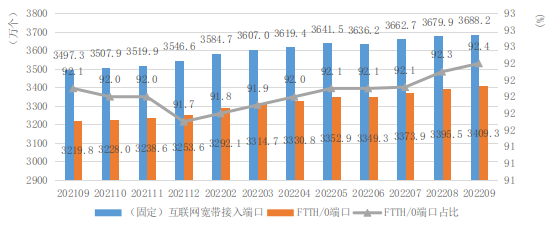 截至9月底,福建省固定寬帶接入端口達(dá)3688.2萬個,同比增長5.5%。其中,光纖接入(FTTH/O)端口3409.3萬個,占比92.4%。具備千兆網(wǎng)絡(luò)服務(wù)能力的10G PON端口達(dá)38.5萬個,比上年末增加10.5萬個。
