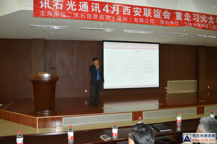 會議正式開始前,訊石董事長石明先生上臺作了熱情的致辭,石總對客人們的到來表示了熱烈的歡迎和感謝,同時也為古都西安的美景發(fā)出由衷贊嘆。隨后,飛秒光電的姚總也代表飛秒對在場的朋友表示感謝。