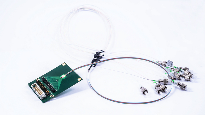 Imec和根特大學(xué)還展示了一款106Gb/s光發(fā)射機(jī),其采用PAM4調(diào)制格式,這種四級(jí)調(diào)制格式在近年來被行業(yè)廣泛采用,用作超500米距離場(chǎng)景的53GBd單通道傳輸?shù)恼{(diào)制格式。相比于其他PAM4光發(fā)射機(jī),IMEC解決方案不需要使用任何同等方式或數(shù)字信號(hào)處理,其集成兩個(gè)并行的GeSi電吸收調(diào)制器,研發(fā)結(jié)果便是一個(gè)最緊湊、低功率(1.5pJ/b)光發(fā)射機(jī),可以在超過1公里單模塊光纖上實(shí)現(xiàn)106Gb/s的傳輸數(shù)據(jù)。