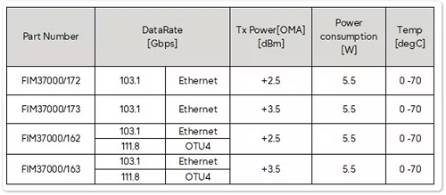 下表重點(diǎn)介紹了FOC可以提供的各種QSFP28 ZR4光收發(fā)器。