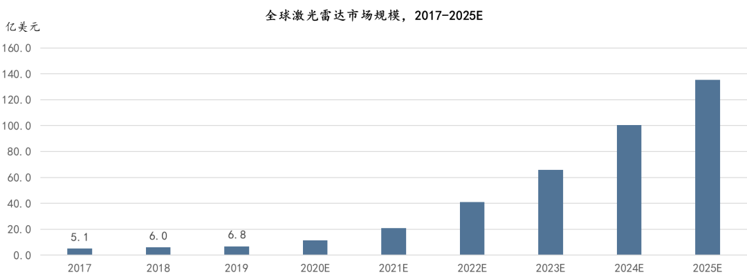 2、 預(yù)計(jì)至2025年,全球激光雷達(dá)市場(chǎng)規(guī)模將高達(dá)135.4億美元