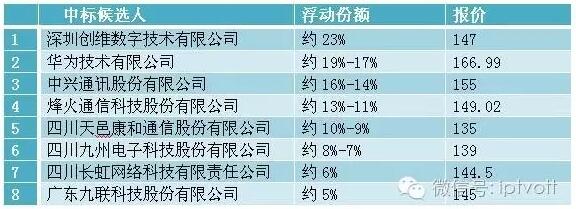 集采共有19家企業(yè)通過資格預(yù)審,報價相差幅度超過40元,最低報價123元,為初次參與電信集采的初靈信息,華為報出了最高報價166.99元。評審結(jié)果顯示,價格是重要的評審指標(biāo),但不是唯一要素,因此中標(biāo)主力仍然是華為、中興、烽火等在IPTV領(lǐng)域耕耘多年的企業(yè),但同時,另一個突出特點是創(chuàng)維、四川九州、九聯(lián)科技這些有規(guī)模有技術(shù)積累的機(jī)頂盒專業(yè)研發(fā)企業(yè)在集采中異軍突起。