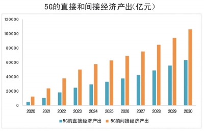 ICCSZ訊 中國信息通信研究院發(fā)布的《5G 經(jīng)濟(jì)社會影響白皮書》預(yù)測,2030 年5G帶動的直接產(chǎn)出和間接產(chǎn)出將分別達(dá)到6.3萬億和10.6萬億元。在直接產(chǎn)出方面,按照2020年5G正式商用算起,預(yù)計當(dāng)年將帶動約4840億元的直接產(chǎn)出,2025年、2030年將分別增長到3.3萬億、6.3萬億元,十年間的年均復(fù)合增長率為29%。在間接產(chǎn)出方面,2020年、2025年和2030年,5G將分別帶動 1.2萬億、6.3萬億和10.6萬億元,年均復(fù)合增長率為24%。